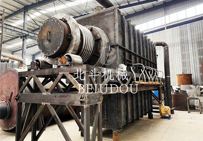 2、油泥炭化設(shè)備裝配煙氣凈化裝置,節(jié)能減排,凈化后的氣體可用于加熱炭化。